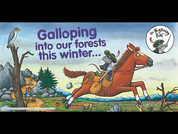 The Highway Rat is the latest Julia Donaldson and Axel Scheffler book to be brought to life on forest trails. Follow panels and discover the forest as you head on a journey with The Highway Rat and all the characters from the story.