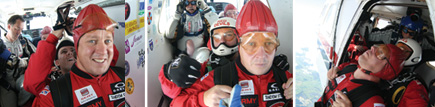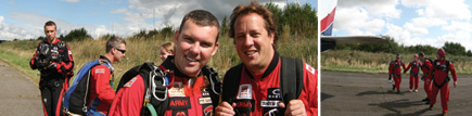 A short introduction by Major Paul Blair about the 'Red Devils' was followed by an instructional talk from Private Danny Wood. All jumpers were told clearly and concisely what the tandem skydive parachute jump was about, with strict safety instructions and procedures to follow. Practising some of the positions used for the skydive jump on the training room floor proved too much for me, as my lack of fitness caused the back of my right leg to spasm with cramp. I was reassured that this wouldn’t occur during the skydive, as we’d be falling through the air – it was purely to make sure that the correct ‘banana’ position was executed properly. A trip to the gym was definitely in order after the skydive.
