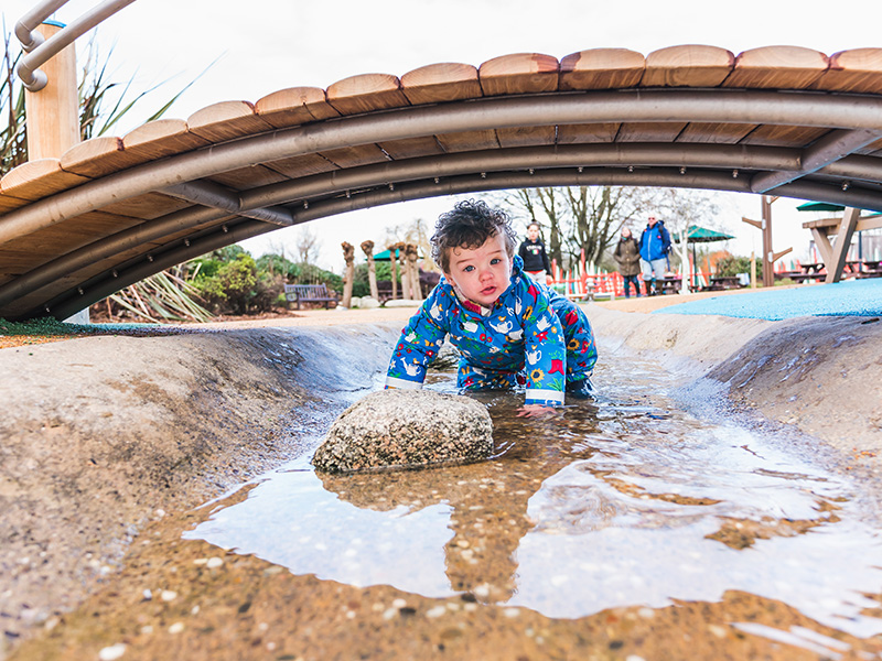Welly Boot Land has a water play area with streams and dams, the route of water flow in the play area has not altered. The play are has retained the roundabout and fountain water feature, all of the water play elements, along the water channel so visitors can enjoy hours of watery fun.