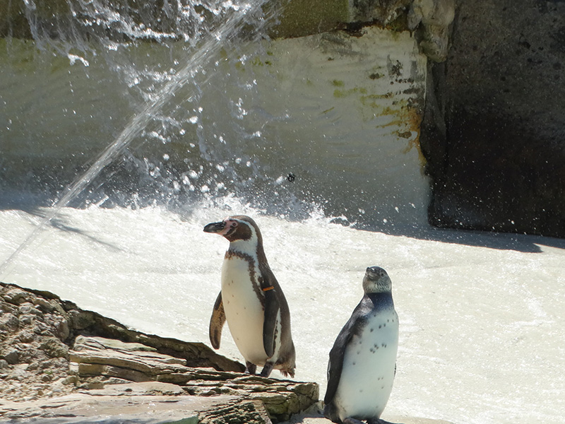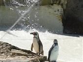 Chris added: "Who doesn’t like a cold shower on a hot day? Humboldt Penguins come from Chile and Peru where it is hot. Our British-born Penguins still appreciate a hose down when it is particularly warm. Our new as-yet-unsexed and unnamed Penguin chick surprised visitors by venturing out of its nest box for the first time and enjoyed a cooling spray from the sprinkler before taking its first dip in the Penguin pool".