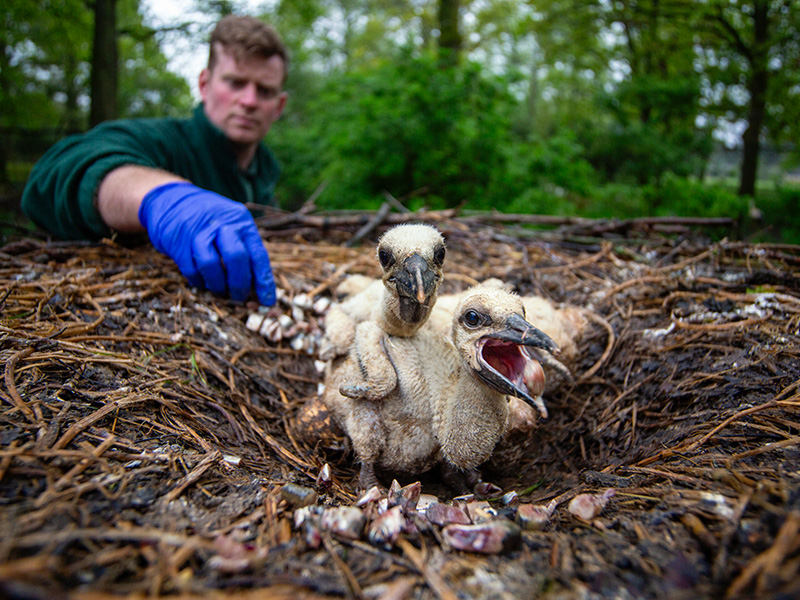 Since then, the Park’s husbandry team has carefully nurtured the birds, supporting breeding pairs through nest building, monitoring egg laying and assisting with feeding chicks to give them the best chance of survival. Once fledged, the young birds are ringed, sexed, and monitored before being transferred to release pens in Sussex.
