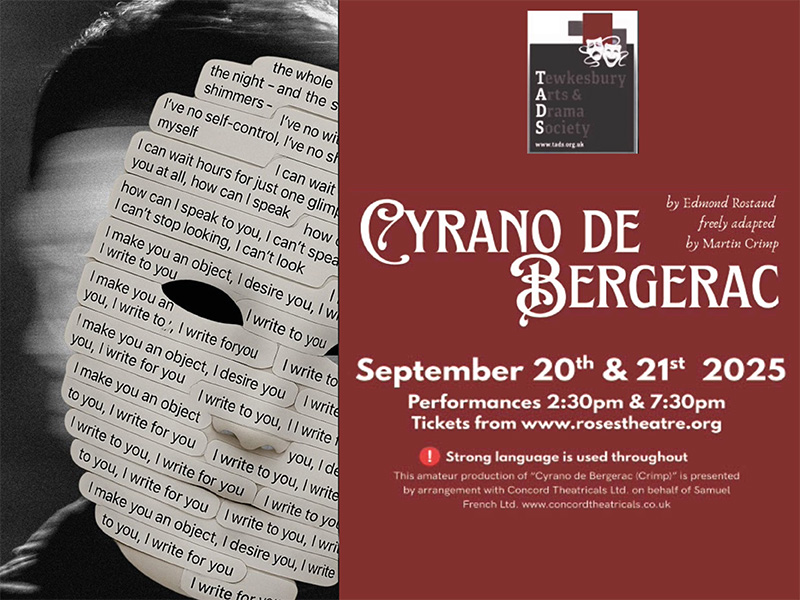 Tewkesbury Arts and Drama Society presents a dynamic retelling of Cyrano de Bergerac. This fast-paced adaptation explores love, loyalty and deception in a witty, action-packed performance. Directed by Paul Sawtell, the play promises to enthral with its sharp humour and emotional depth. A fresh take on a beloved theatrical classic.