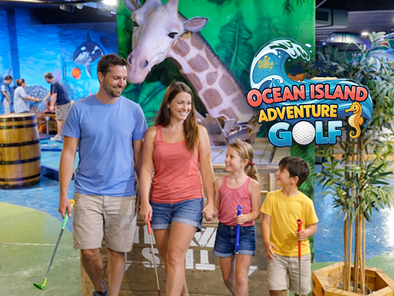 Explore Gloucestershire have teamed up with Ocean Island Adventure Golf to offer one lucky winner a family session for two adults and two children. This vibrant indoor attraction brings together immersive themed mini golf, interactive challenges, and a lively atmosphere perfect for all ages.