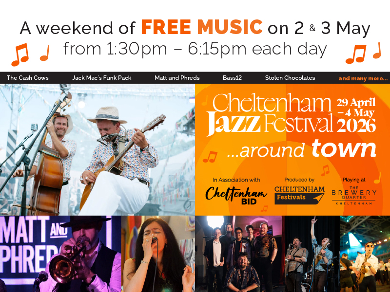 The Brewery Quarter in Cheltenham is bringing the energy of the Jazz Festival into the heart of the town this May bank holiday, with two afternoons of free live music and entertainment. As part of Cheltenham BID’s Around Town programme, the popular destination will transform into a vibrant open-air stage.